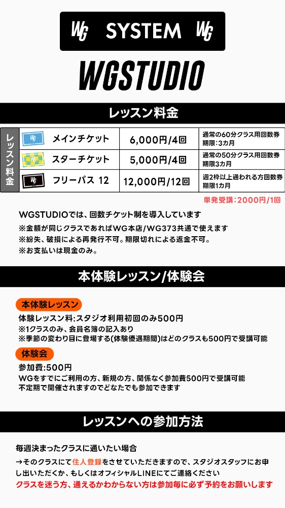 WGstudio本店(蒲郡市御幸町)とWG373(三谷駅南)は、共通チケットで通うことができます